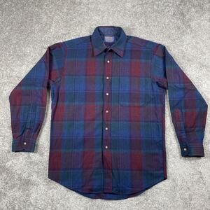 Pendleton Wool Flannel Shirt Mens Medium Made in USA Plaid Button Up Outdoors
