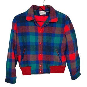 Vintage 80s/90s Kids Pendleton wool jacket. Vibrant checkered colors!