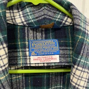 Envelop yourself in the cozy embrace of this vintage Pendleton robe, a timeless piece that exudes classic comfort. This robe features a rich green and blue plaid pattern, known as the "Dress Campbell" tartan, bringing a touch of heritage to your loungewear. Notice the supple wool construction and full-length design, creating a cocoon of warmth. This Pendleton robe is perfect for cozy evenings by the fire, lazy weekend mornings, or as a stylish layer on chilly days.