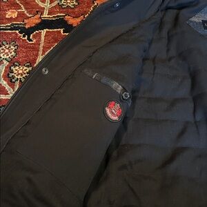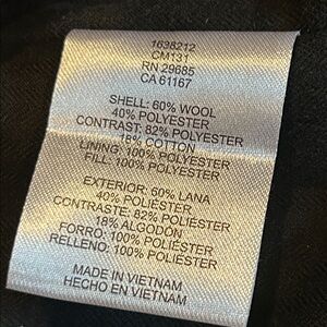 Size Medium (23.5” Bust, 29” Length). Wool exterior, poly filled, navy/gray color, zip/button front, exterior interior pockets. New with tags. Perfect for cool weather.