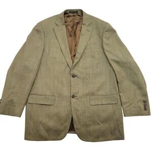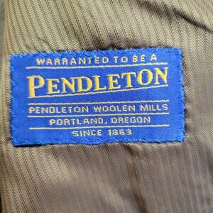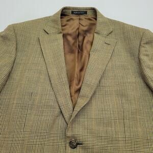 Pendleton Wool Silk Linen Blend Balzer 44R Plaid Brown Blue Tan 2 Button Vintage