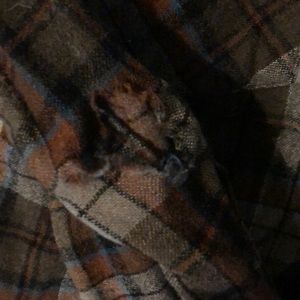 This shirt is in ok shape, some small holes and one large one on right elbow. A cute patch will spiff this up! Still has a lot of life.