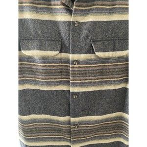 Pendleton Wool Striped Board Shirt Loop Collar Size Medium COLORFUL EUC
