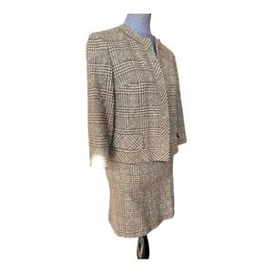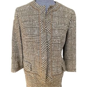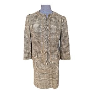 Pendleton Wool Suit Brown Tan Tweed Blazer Skirt Vintage Size 12