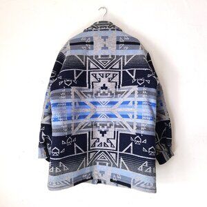 Pendleton coat, vintage wool jacket, Thinsulate lined, men’s winter coat, Aztec print, Navajo style, Southwestern outerwear, USA made, heritage jacket, blue gray geometric pattern, collectible Pendleton, outdoor ranch wear, hipster, workwear.