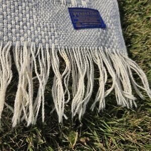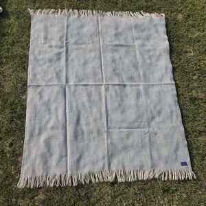 Pendleton Woven Wool Throw Blanket Robins Egg Blue and White With Fringe 60 X 75