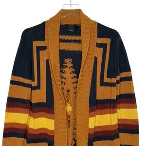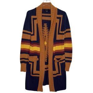 Pendleton XS Womens Harding Long Open Cardigan Intarsia Knit Aztec Southwestern