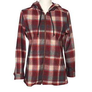 Pendleton Zip Up Hoodie Jacket Red Size Petite Small Plaid Wool Pockets Layering