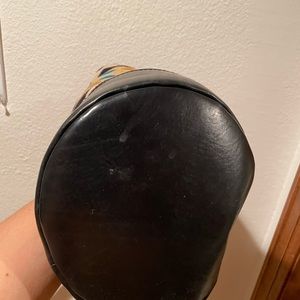 Gorgeous black leather and the wool is in great shape. A vintage 80s style and clean bag inside and out. Has SOME wear spots! see pics. Please ask any questions