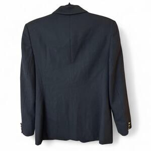 Black Pendleton fitted blazer with shiny gold rim buttons and shoulder pads.