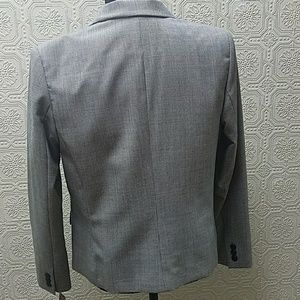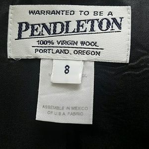 Black and white houndstooth blazer with single front button, size 8. 100% virgin wool