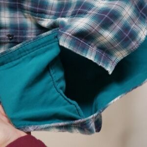 Pendleton flannel plaid teal purple button down shirt, cotton, machine washable, faux front hip pockets,