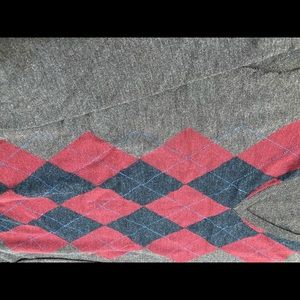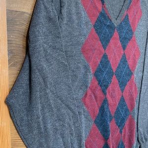 Grey wool Pendleton sweater with red and blue Diamond pattern on the front