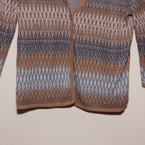 Pendleton one button Cardigan Linen Cotton Size Large Argyle Diamond Pattern. Not a fuzzy sweater knit, since this is a linen/cotton blend. 3/4 sleeve length. V-neck.