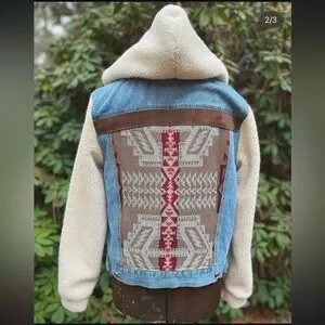 Tag says XL but fits like a M/L. Sherpa hood and sleeves lined. Pendleton panel with leather accent.