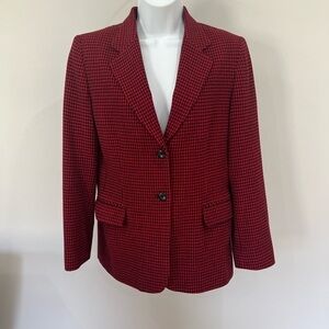 Pendleton red and black check virgin wool button front blazer jacket size 6