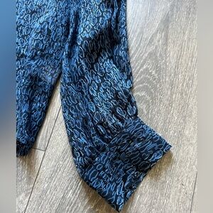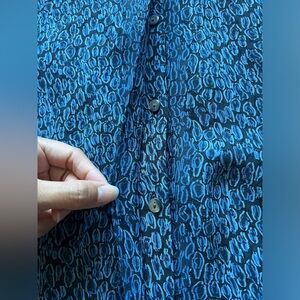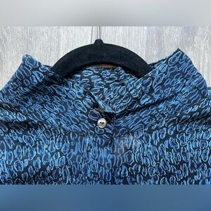 Pendleton semi sheer silk button up patterned blouse in black/blue. Size 18