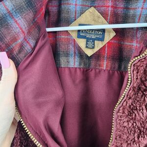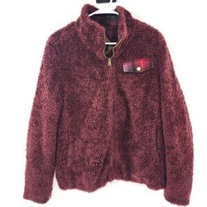 Pendleton sherpa fleece full zip sweatshirt jacket maroon large red soft