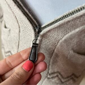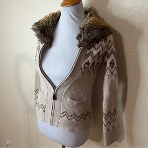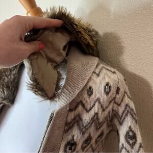 Pendleton tan wool alpaca fair isle front zipper sweater removable fur collar XS