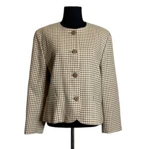 Pendleton vintage beige gingham pure virgin wool button blazer size P14