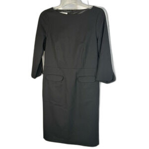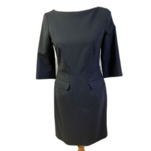 Pendleton virgin wool Black Sheath Dress Bateau Neck 3/4 Sleeve size 10