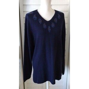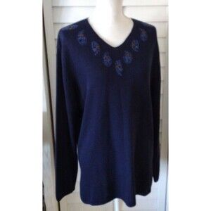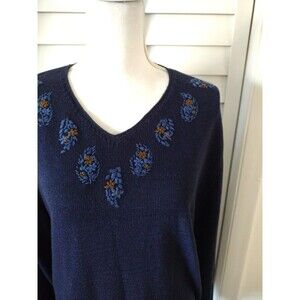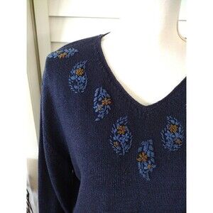 Pendleton women's v-neck embroidered navy sweater L