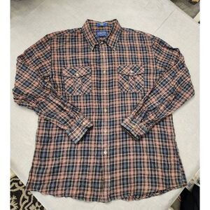 Pendleton Kingston shirt Fitted Flannel men plaid button up 2 chest pockets cotton multi color. good pre-owned condition no stains no holes measurements provided in pictures are approximate please check measurements for proper fit