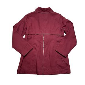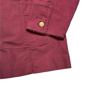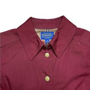 This Pendleton utility jacket in a striking red hue features a structured and tailored design, perfect for both professional and casual settings. Its collared style and cropped length offer a modern twist on a classic silhouette, making it a versatile addition to any wardrobe. Crafted with attention to detail, this jacket embodies both functionality and style.