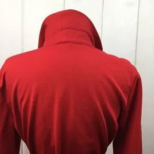 Pendleton Red Tie Waist Modal Wool Jacket. Size MP. 41% modal, 36% nylon, 17% wool, 6% spandex. Leave sleeves cuffed as in photo, or unroll them for longer arms. Detachable belt for waist and front has 2 pockets. There’s also a really cool strip of inserted red fabric down the shoulders and continuing down the arms (photo 7-8). No tears or stains. Gorgeous jacket!