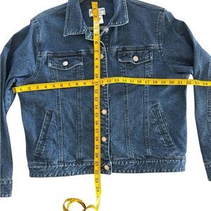 This Pendleton women's trucker denim jean jacket is a must-have for any fall wardrobe. The blue medium wash size Large Petite (see measurements ) jacket is made with high-quality cotton denim fabric, perfect for keeping you warm and stylish during the colder months. Whether you're running errands or going out with friends, this jacket is a great addition to your wardrobe.