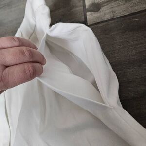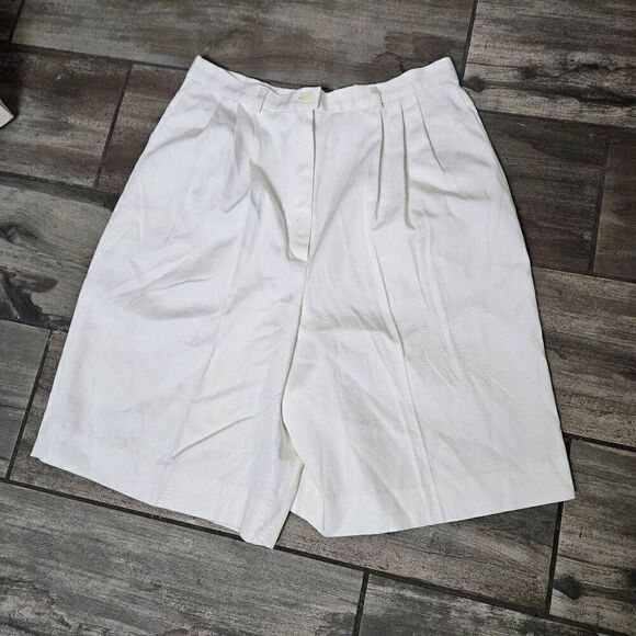 This is a pair of white Pendleton shorts. They have a hidden button behind the fly, and pleated detailing around the waistband.