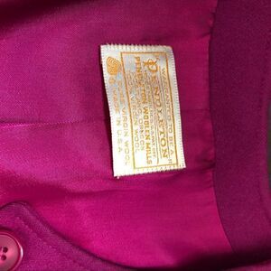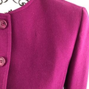 Pendleton wool cropped jacket or blazer size 10. Pink button down that is 100% virgin wool. Crewneck with button accents on sleeves. One small pinhole on front and rub mark on side. Can’t see unless pointed out. No stains. Warm but lightweight! Beautiful color!