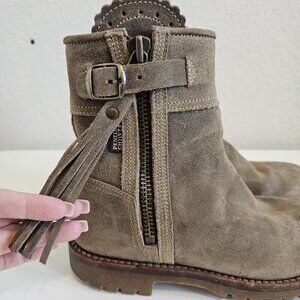 Penelope Chilvers Gaucho Birch Cropped Suede Leather Tassel Equestrian-Style Ankle Moto Boots 6