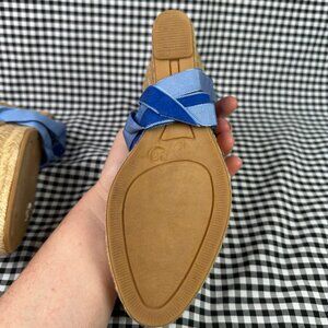Penelope Chilvers High Valenciana Dali Espadrille Wedge Sandal Blue Velvet
