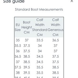 Measurements below are taken from the Penelope Chilvers website sizing guide. Please reference it for additional fit guidance. These boots are Standard Height and Standard Calf