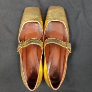 RARE ♡ Penelope Chilvers ♡ Square Toe Ballet Flats Metallic Gold
