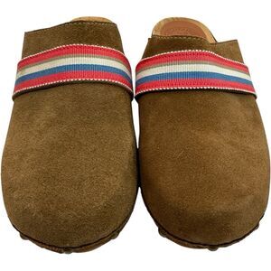 This suede clog is highlighted by bold striped trim and a natural wood base for a '70s vibe that will complement every laid-back look.