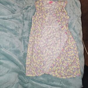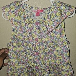 This charming sundress by Penelope Mack features a playful ruffled and tiered design in vibrant pink and yellow hues. The dress boasts a scoop neck and flutter cap sleeves, making it perfect for casual outings. Its lightweight fabric and flowing silhouette ensure comfort and style throughout the day.