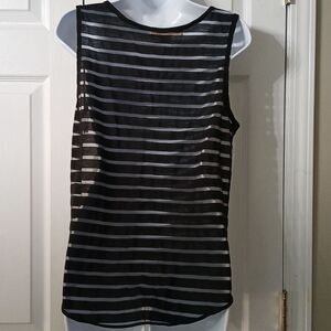 Penelope white and black birdcage printed sleeveless semi sheer blouse Sz M EUC