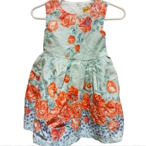Pretty little girls sundress. Size 12 months-PTP 8",waist 8"+ with back elastic gathers. Back yoke with "tulip" overlaps and button. Yoke is lined. Fabric is "dotted Swiss" and 100% cotton. Lining 80% polyester/20% cotton