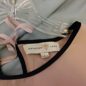 Dusty pink with navy piping, ribbon neck tie dress. Mid thigh length, flowy and beautiful.
