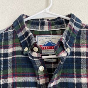 Button front, cuffs & collar. Plaided pattern shown throughout the shirt. Great color way that goes with mostly anything. Lightweight flannel material which makes it comfortable to wear and great for outdoor activities or casual wear. Originally $135 so don't miss out on this deal !!