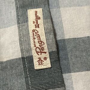 This lightweight shirt features a large plaid pattern in blue and gray, offering a relaxed fit perfect for warm weather. Ideal for casual outings, its short sleeves and button-down collar add a touch of classic style.