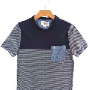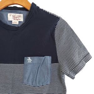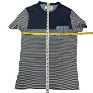 Penguin Boys T-Shirt Small Blue Gray Short Sleeve Stripes Crew Neck Cotton