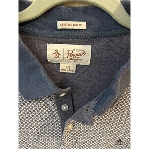 Penguin Brand Short Sleeve Polo Shirt top slim fit Mens Size Large blue grey