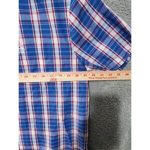 Penguin Button Up Shirt Large Classic Fit Blue Plaid Short Sleeve Casual Mens