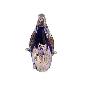Penguin Cobalt Blue Art Glass Figurine/Paperweight~White Ice Belly~2 Babies. Wit