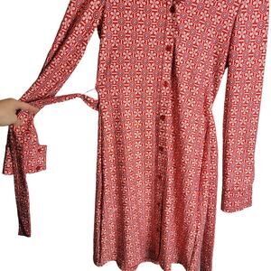 A cute long sleeve collar shirt dress with daisy and penguin logo print polyester by Penguin in size P (small).