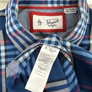 Penguin Flannel Shirt Mens XL Blue Plaid Casual Button Up Long Sleeve Cotton