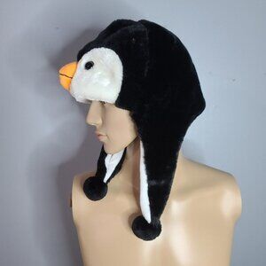 Penguin Fuzzy Stuffed Plush Animal Cap Hat w/ Earmuff Protection Unisex